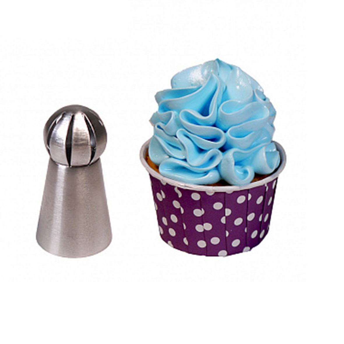 Насадка Восточная роза для создания высоких пушистых шапочек для капкейков. Крем ложится мягкими волнами, создавая удивительные складки.