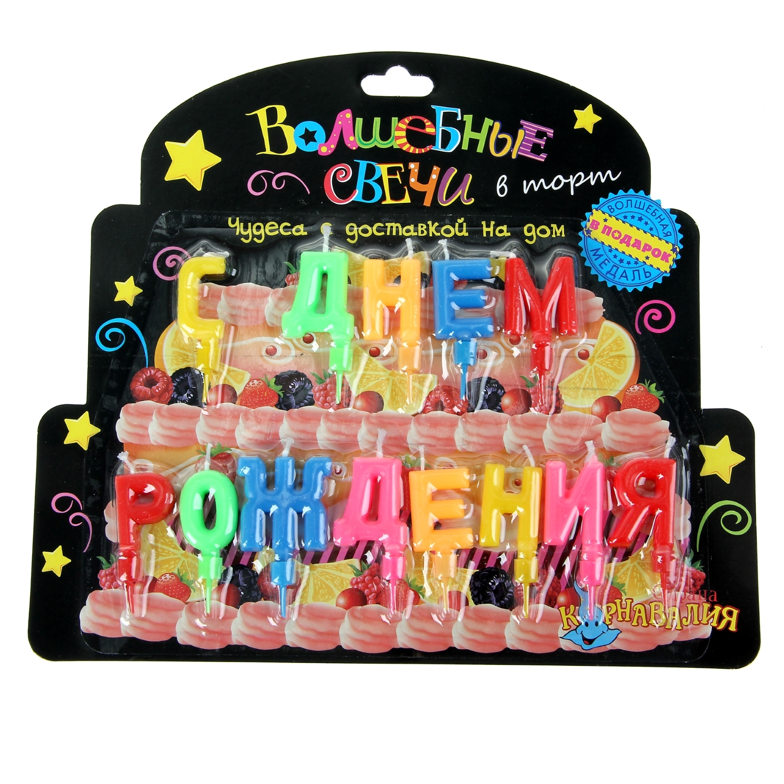 Свеча фигурная "С днем рождения!" разноцветная, Карнавалия